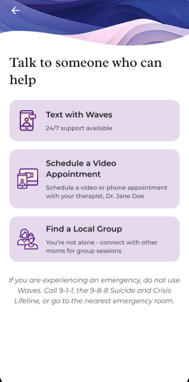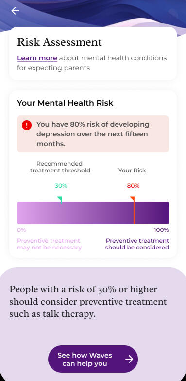 Waves uses AI to help you understand your personal risk of perinatal depression.